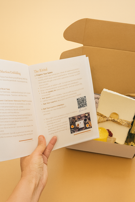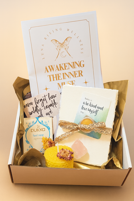 Awakening the Inner Muse is a small-batch creative ritual box designed to help women slow down, reconnect with themselves, and experience creativity as a sacred, nourishing, and mindful practice.