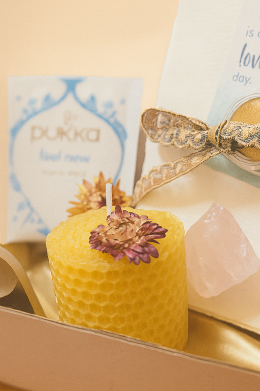 - Hand-Rolled Beeswax Candle – to call yourself present and bring intentionality to your ritual space.